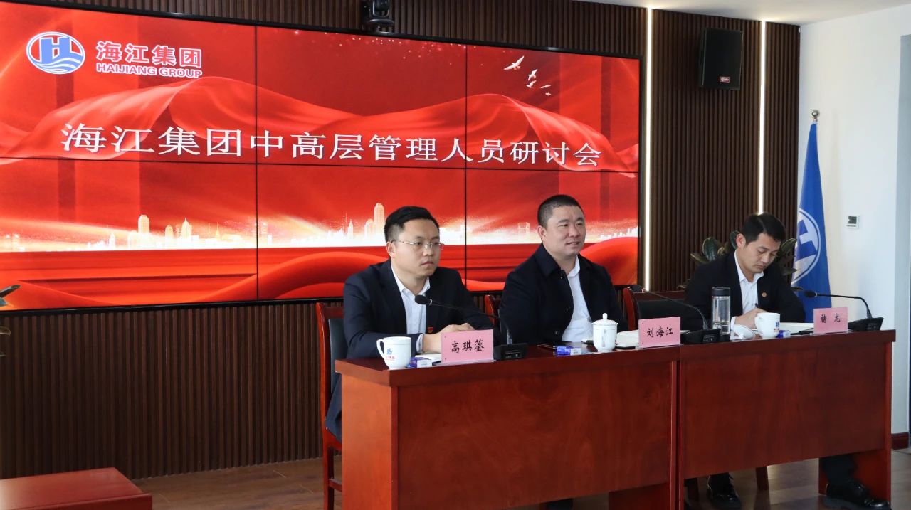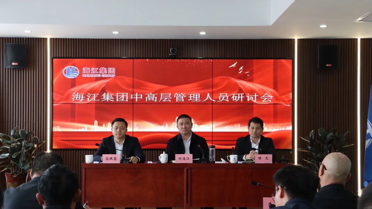? ? Seminar for Middle and Senior Management of Haijiang Group. Liu Haijiang, Chairman of Haijiang Group, Chu Long, General Manager, and Gao Qiying, Party Branch Secretary, led a seminar for middle and senior management to summarize the achievements and shortcomings of the company in 2023, fully implement the group's "globalization, digitalization, and low-carbon" development strategy, and deeply explore the future development direction of Haijiang Group.??