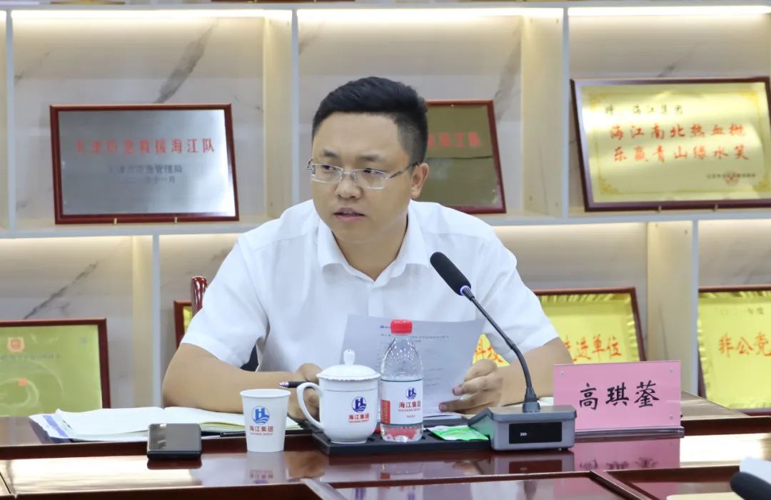 ? ? ? ? 年半而思擂進鼓,砥礪奮進下半年。為謀劃公司發展戰略規劃,促進各部門的業務發展,總結2023年上半年取得的成績及開展下半年工作規劃部署,海江集團于2023年7月18日召開2023年中經濟運行分析總結會。會議由海江集團黨支部書記高琪鎣主持,集團領導劉海江、褚龍及各部門負責人參加會議。各部門負責人在會議中進行上半年工作匯報,劉海江董事長在會議中做出下半年重要工作指示。