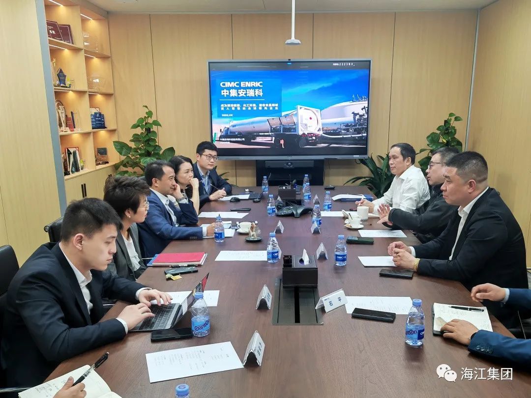? ? 3月3日,海江集團董事長劉海江,黨支部書記高琪鎣與申能能創黨委副書記、總經理葉褚華,申能環境執行總裁唐新亮等領導赴深圳中集安瑞科控股有限公司進行參觀交流并洽談合作。中集安瑞科總經理、中集集團執委會成員楊曉虎等領導熱情接待并陪同參觀交流。