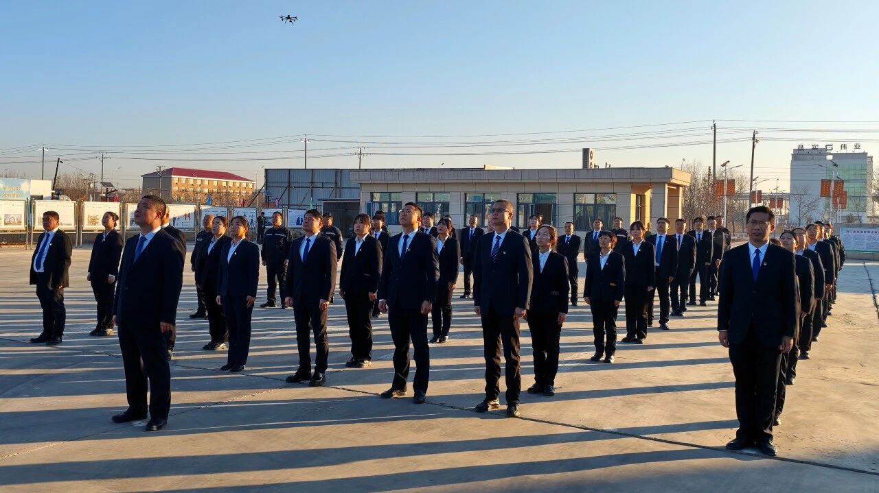 ? ? ? 升旗儀式莊嚴舉行。國歌奏響,五星紅旗與集團司旗一同迎風飄揚。