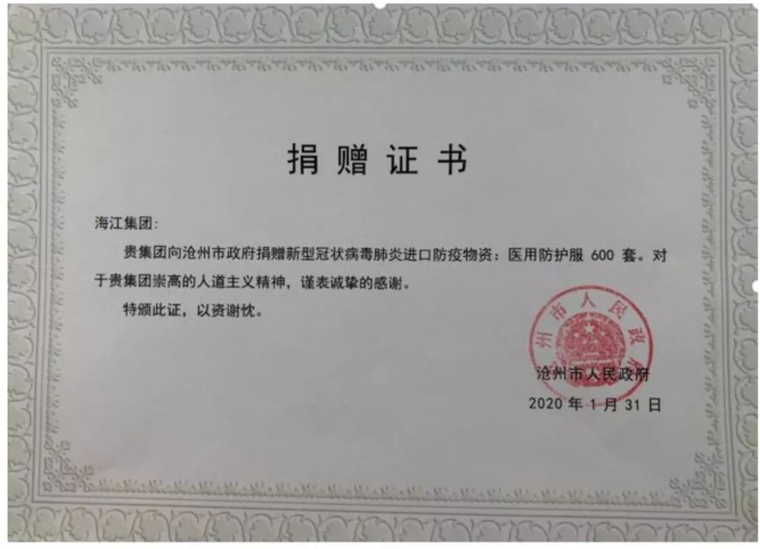 海江集團作為一家有社會責任感的企業(yè),多年來一直致力于公益事業(yè)的發(fā)展。在當下這個特殊的時期, 密切關(guān)注疫情進展,全員攜手凝心聚力,共克時艱;同舟共濟、眾志成城,堅決支持打贏疫情防控阻擊這場戰(zhàn)役!