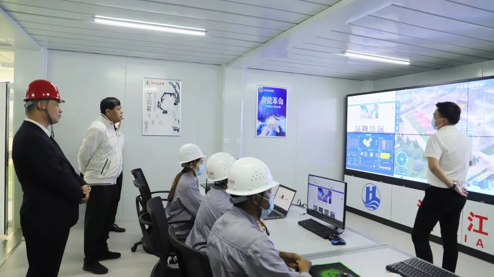 現場,海江集團董事長劉海江親自為黃會長講述了海江5G全球遠程操控技術。該技術是與華為深度合作,依托5G通信技術,由智能拆除延伸到智慧拆除,與遠端的控制室相連,實時控制位于拆除廠區內的無人挖掘機,同步回傳真實作業場景及全景視頻實況。在國內同行業中,率先運用此項技術,難度系數非常高。該項目不僅實現海江集團智能拆除體系中無人拆除目標并且有效規避了施工人員在高風險、不可控的環節下操控機械作業傳統拆除行業現象,也為未來中國智慧無人工地的實現提供了無限可能??梢韵胂螅诓痪玫膶恚僮鲉T可以足不出戶的實時操控百里甚至千里之外的挖掘機,不受時間、氣候、環境的影響,大大的提高了工程進度、規避了施工風險!