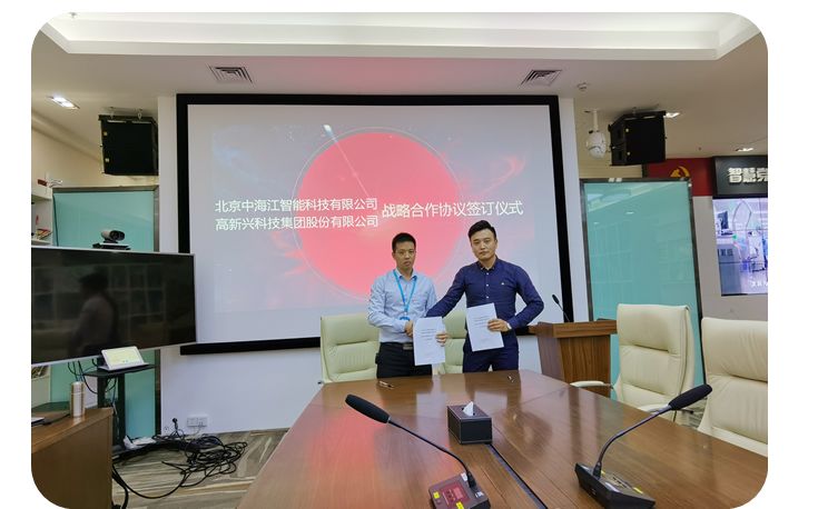 ? ? 11月7日北京中海江智能科技有限公司與高新興科技集團股份有限公司就人工智能、互聯網、大數據,于石油煉化行業定制領域深入探討,并達成共識。雙方領導簽訂戰略合作協議。