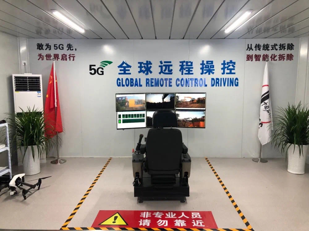 無人駕駛技術(shù)與華為深度合作,利用5G高帶寬、低時延的特性與千里眼等核心能力,結(jié)合海江集團自主研發(fā)的電控單元、電液轉(zhuǎn)換、姿態(tài)傳感器等,實現(xiàn)了對挖掘機的遠程精準控制。依托5G通信技術(shù),與遠端的控制室相連,實時控制位于拆除廠區(qū)內(nèi)的無人挖掘機,同步回傳真實作業(yè)場景及全景視頻實況。