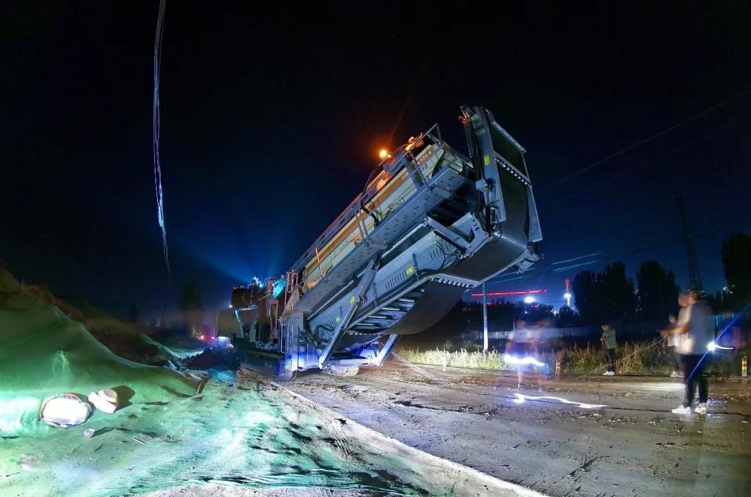 ? ? 海江集團資源化處置設(shè)備在技術(shù)人員的遙控下,移動式破碎篩分機緩慢進入雄安整體拆遷村,對房屋拆除后產(chǎn)生的建筑垃圾進行處理。每套移動式破碎篩分機分為2臺篩分機和1臺破碎機,能夠?qū)Ψ课莶鸪螽a(chǎn)生的建筑垃圾以每小時300噸的處理速度進行破碎和篩分,最終形成0—5mm、5—10mm、10—200mm等不同粒徑的優(yōu)質(zhì)骨料可用于市政園林堆山造景、高速公路路基、路床填筑和再生磚、再生砌塊制作等,再生產(chǎn)品豐富。