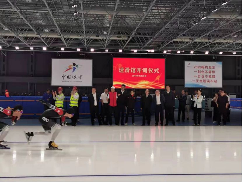 ? ? ?一年后的今天,2019年9月28日速滑館開訓儀式我們又一次迎來了國家體育總局局長茍仲文,茍局長對拆除單位、建設單位等各方共同打造的“中國速度”表示充分肯定及高度認可,并希望廣大運動員能夠刻苦訓練、努力提高,在2022年北京冬奧會上亮出中國的“世界速度”。