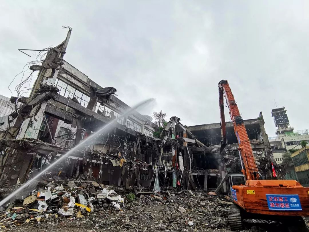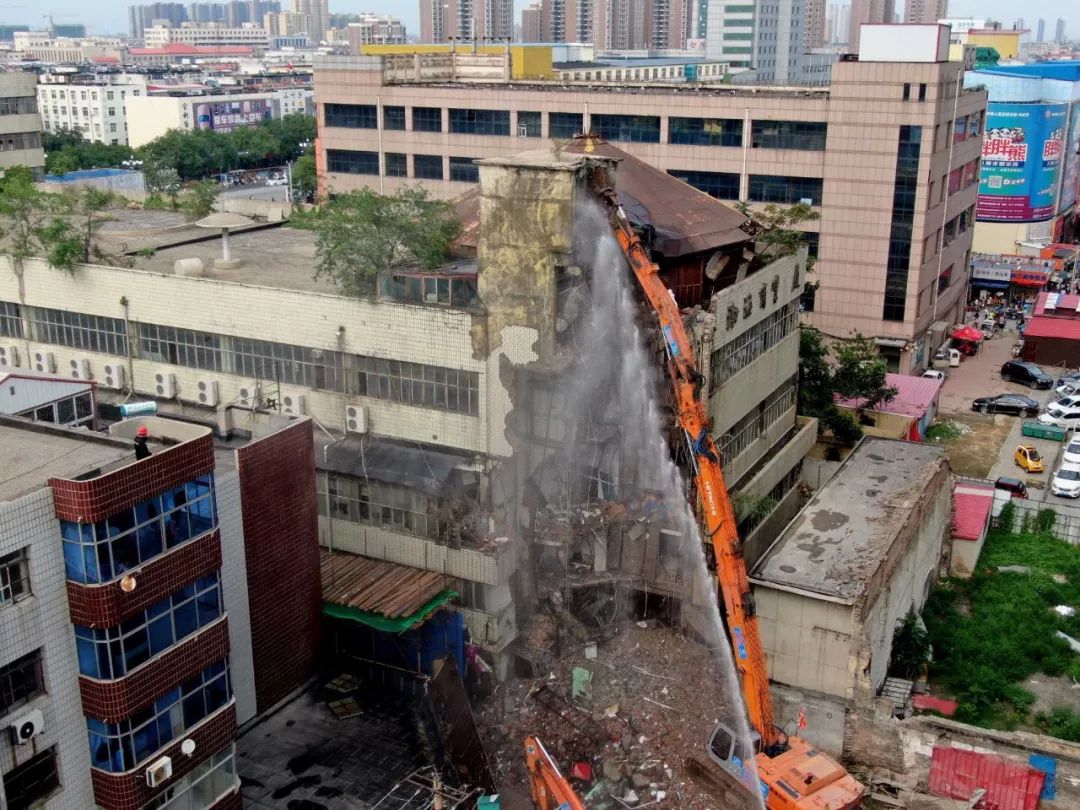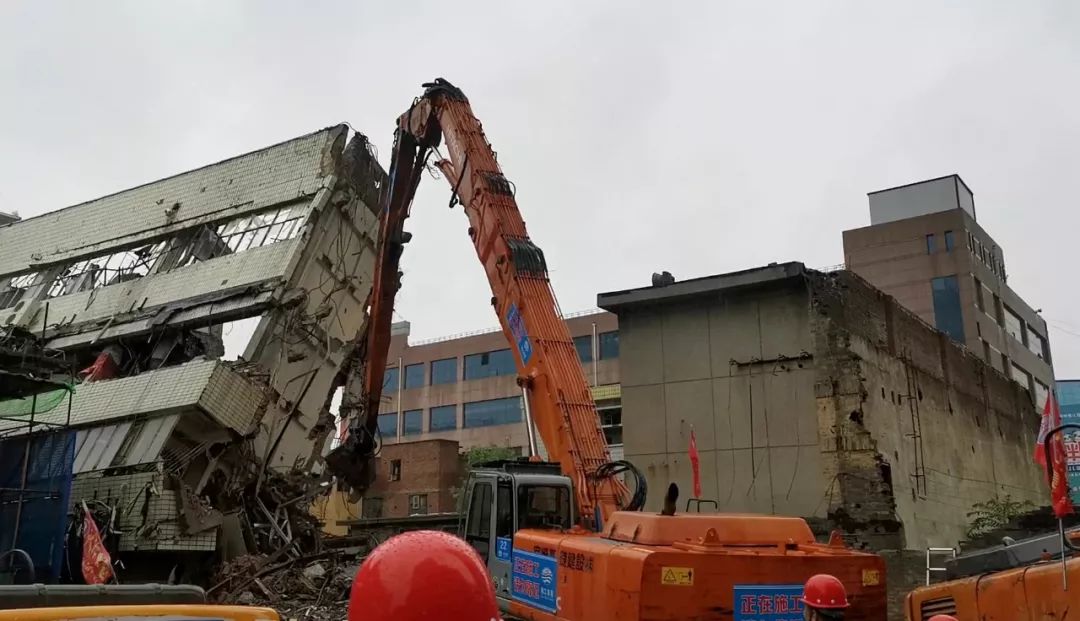 ? ? 8月11日下午5時,渤海大廈南側樓順利完成拆除作業。此次作業,樓與樓之間間隙小,施工作業面窄、作業難度大,海江集團經多方論證,采用最新智能液壓剪配合新工藝載荷式移位定向放倒,順利解決了所面臨的難題。