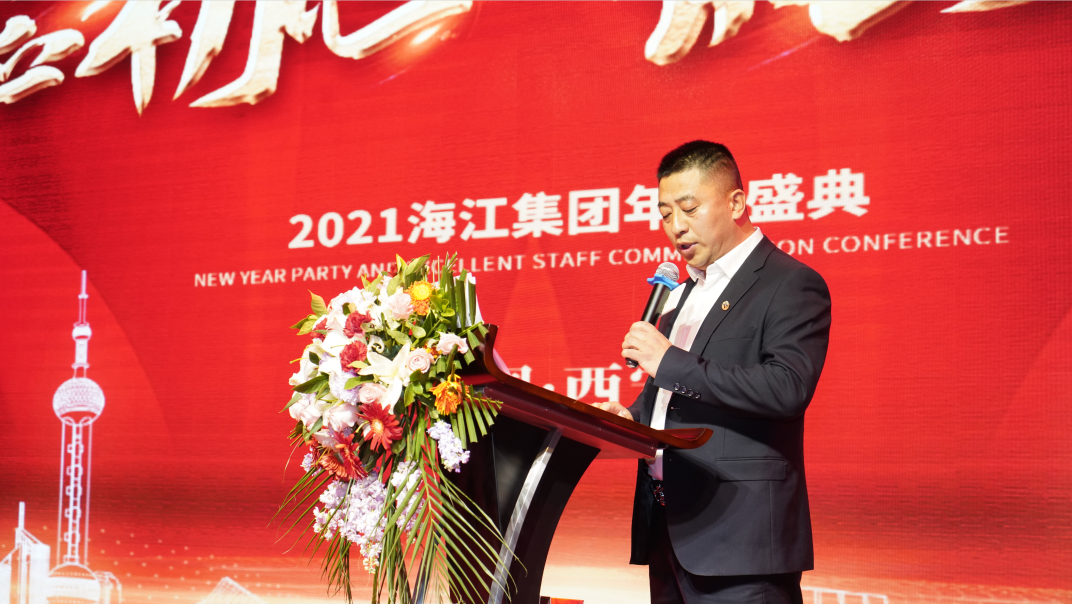 隨后,海江集團董事長劉海江發表了熱情洋溢的新年致辭,并向各級領導、社會各界朋友、廣大客戶和合作伙伴以及全體海江人,致以最衷心的感謝和最誠摯的新年祝福!他說到,新的一年機遇與挑戰同在,我們須堅守“循環再造,生生不息”的初心,艱苦奮斗,力將海江集團打造成為最具競爭力的生態環保科技企業。
