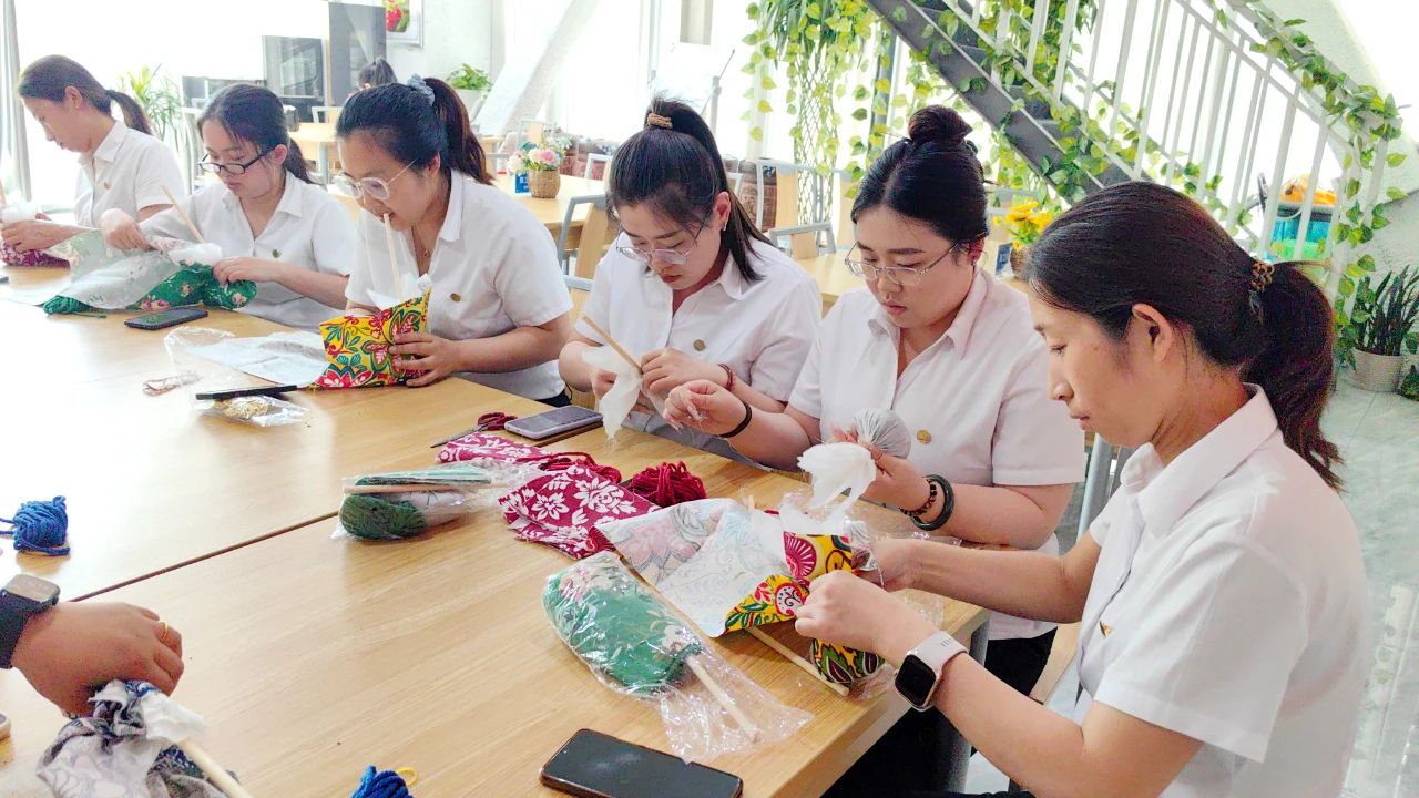 ? ? 當(dāng)天下午,集團(tuán)總部特設(shè)端午手工制作坊,“手持艾旗招百福,門懸蒲劍斬千邪”, 在輕松愉快的氛圍中,員工們利用準(zhǔn)備好的材料和工具,親手縫制專屬艾草養(yǎng)生錘。