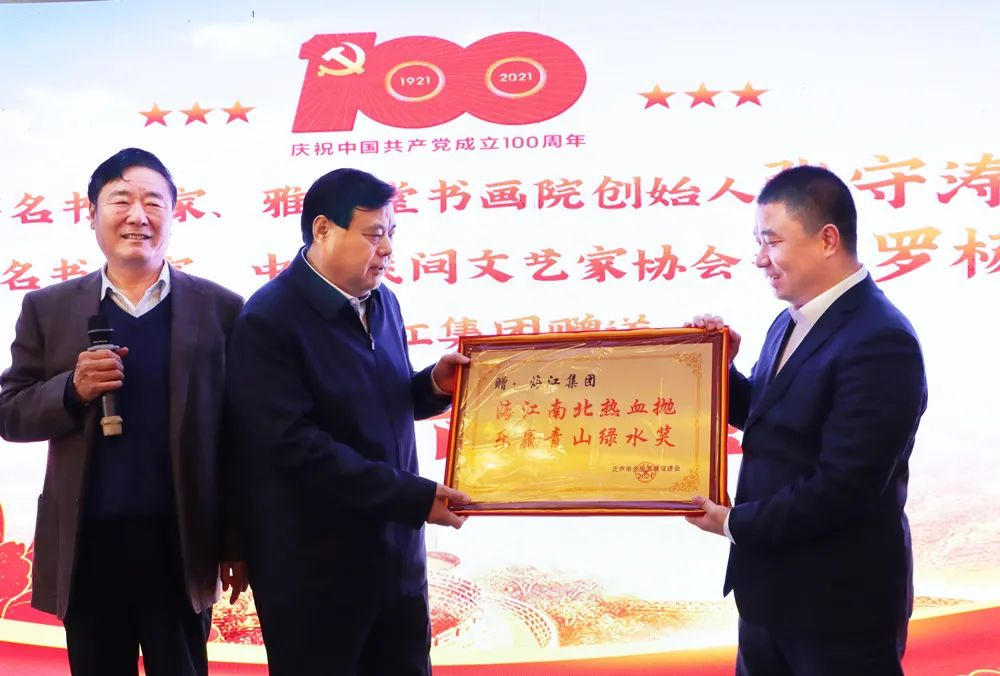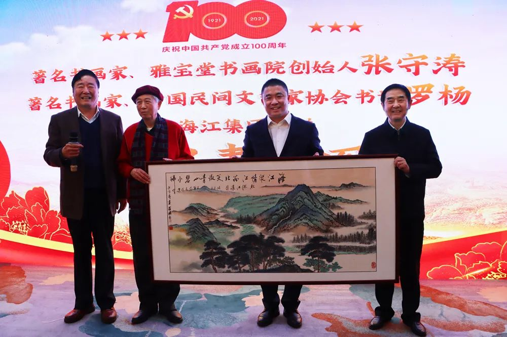 百年輝煌映日月,百家書畫譜新篇。2022年1月16日,建黨百年百家書畫邀請(qǐng)展暨北京市企業(yè)發(fā)展促進(jìn)會(huì)第二屆理事會(huì)第三次會(huì)議在北京維也納國(guó)際酒店隆重開(kāi)幕。此次展覽展出了包括中國(guó)國(guó)畫家協(xié)會(huì)主席雷正民、原北京市副市長(zhǎng)孫安民、中國(guó)國(guó)際書畫藝術(shù)促進(jìn)會(huì)會(huì)長(zhǎng)張守濤、中央文史館特約研究員羅楊等的作品100多幅,涵蓋了中國(guó)畫、油畫、書法、篆刻、剪紙等多種藝術(shù)形式,回顧和展示了中國(guó)共產(chǎn)黨100年來(lái)走過(guò)的光輝歷程,熱情謳歌了建黨以來(lái)所取得的光輝業(yè)績(jī)和偉大成就。海江集團(tuán)董事長(zhǎng)劉海江、黨支部書記高琪鎣、總裁褚龍、副總李國(guó)棟等應(yīng)邀出席。