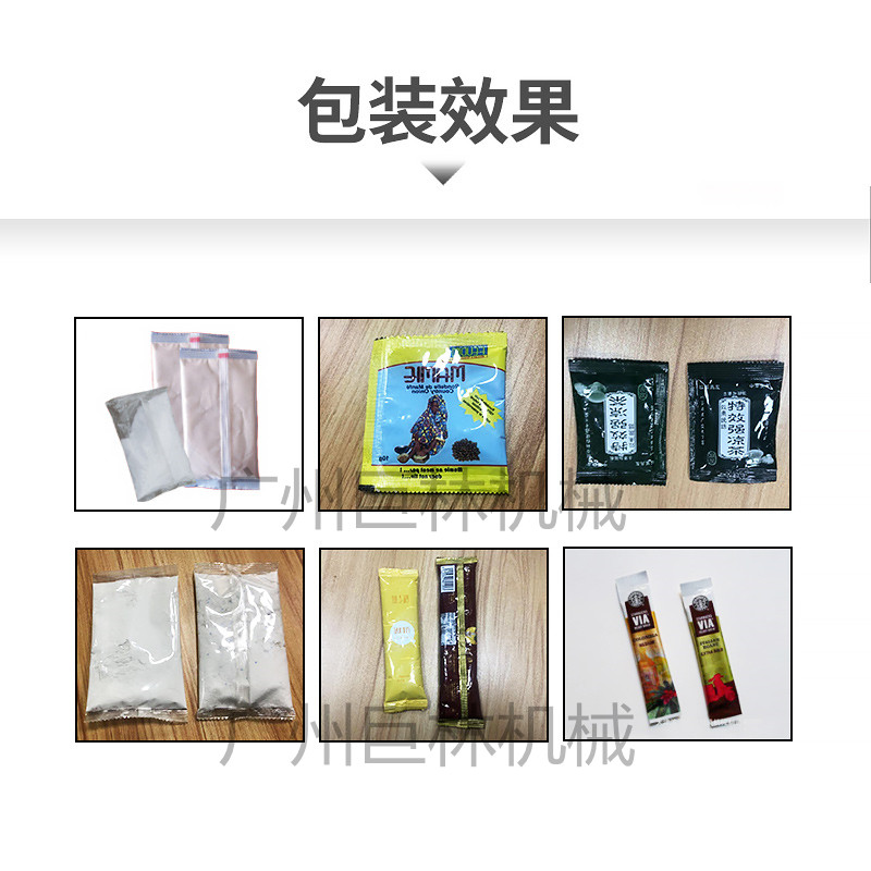 本機(jī)采用光電眼控制系統(tǒng)、螺旋計(jì)量、步進(jìn)電機(jī)驅(qū)動性能可靠穩(wěn)定.從計(jì)量、充填粉、面粉、、制袋、打碼到產(chǎn)品輸出一次完成、適用流動性較好的粉沫、豆胡椒粉、奶粉、發(fā)酵粉等物料.