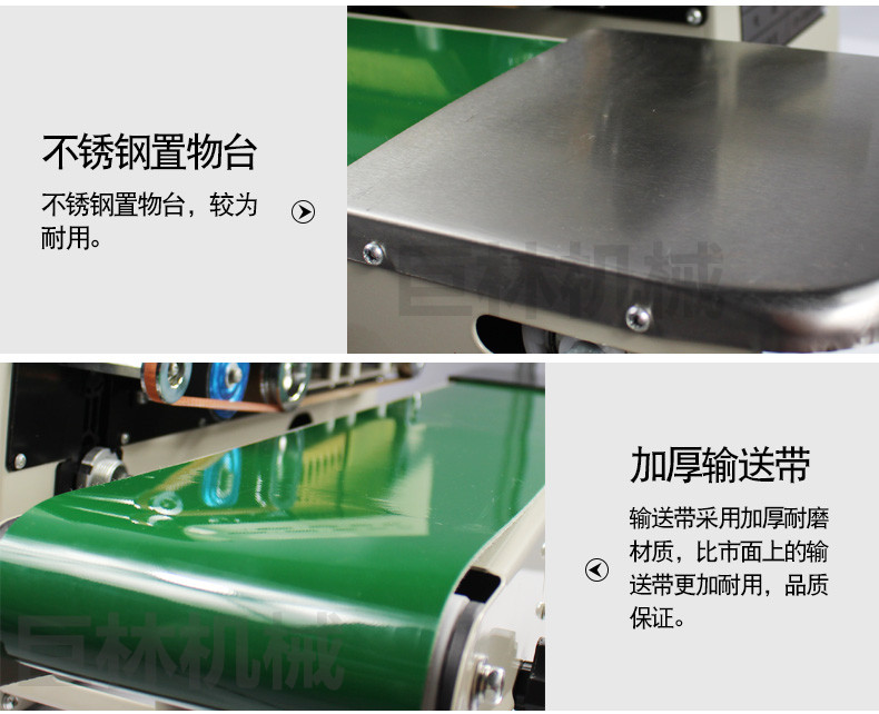 該系列封口機(jī)采用電子恒溫控制和無(wú)級(jí)調(diào)速傳動(dòng)系統(tǒng),具有自動(dòng)連續(xù)封口、印刷產(chǎn)品標(biāo)簽、一次完成之功能,并可臥、立落地使用。用于單層薄膜及各種復(fù)合薄膜的封口、制袋,廣泛應(yīng)用在食品、制藥、種子、化工、輕工等部門(mén)。